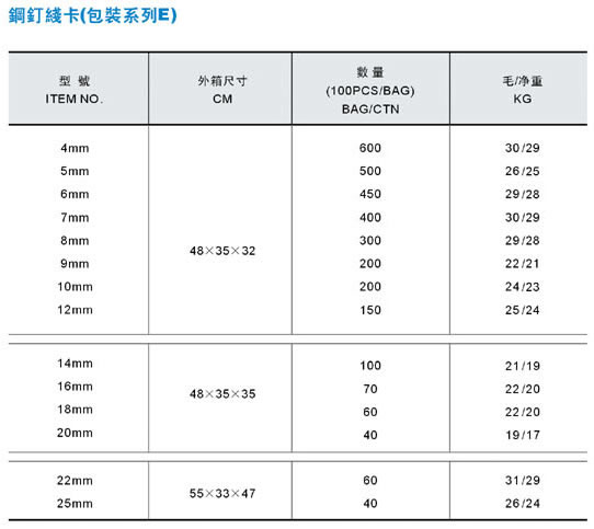 • 產品類別: 產品展示 鋼釘線卡